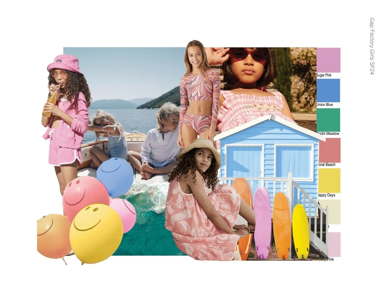Girls’ swim is a category I fully owned from start to finish for Gap Factory as an assistant designer. My focus was creating swim wear pieces that focused on making a capsule collection that would bring joy to the wearer and spark the idea of summer fun into the buyer.